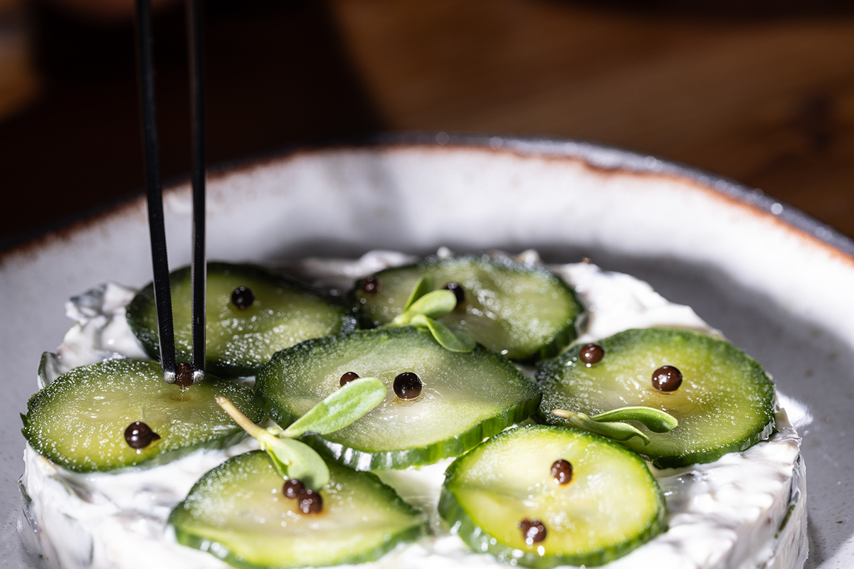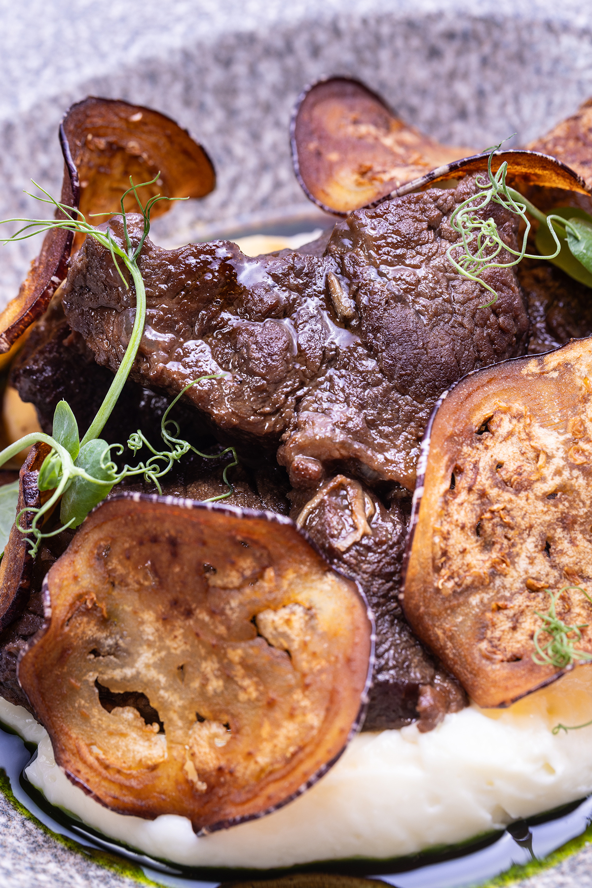 Σε ένα παραδοσιακό και προσεγμένο περιβάλλον, η αυθεντική κρητική κουζίνα προσφέρεται σε πρωτότυπες εκδοχές μέσα από ένα μενού που φέρει υπογραφή αριστείας. Με βάση τα αυθεντικά υλικά, τα εποχικά κηπευτικά, τα βότανα του τόπου και κρέας που προέρχονται από την τοπική κοινότητα και τις φάρμες της περιοχής χωρίς επεξεργασία, οι παραλλαγές που προτείνουμε σε κλασσικές συνταγές, όπως το οφτό γουρουνάκι, το κουνέλι ραγού, το κατσικάκι στον ξυλόφουρνο και οι χοχλιοί, θα ενθουσιάσουν τον επισκέπτη που αγαπά τη κρητική γαστρονομία, αλλά κα εκείνον που θέλει να τη γνωρίσει. Απολαύστε χειροποίητο ψωμί, πίτες σε χορτοφαγική και μη εκδοχή, φρέσκα ζυμαρικά και ξεχωριστές προτάσεις σε συνταγές με καπνιστό κρέας που επιμελούμαστε στην κουζίνα μας. Συνοδεύστε με κρασί παραγωγής μας ή επιλέξτε κάποια ετικέτα από τον κατάλογο.